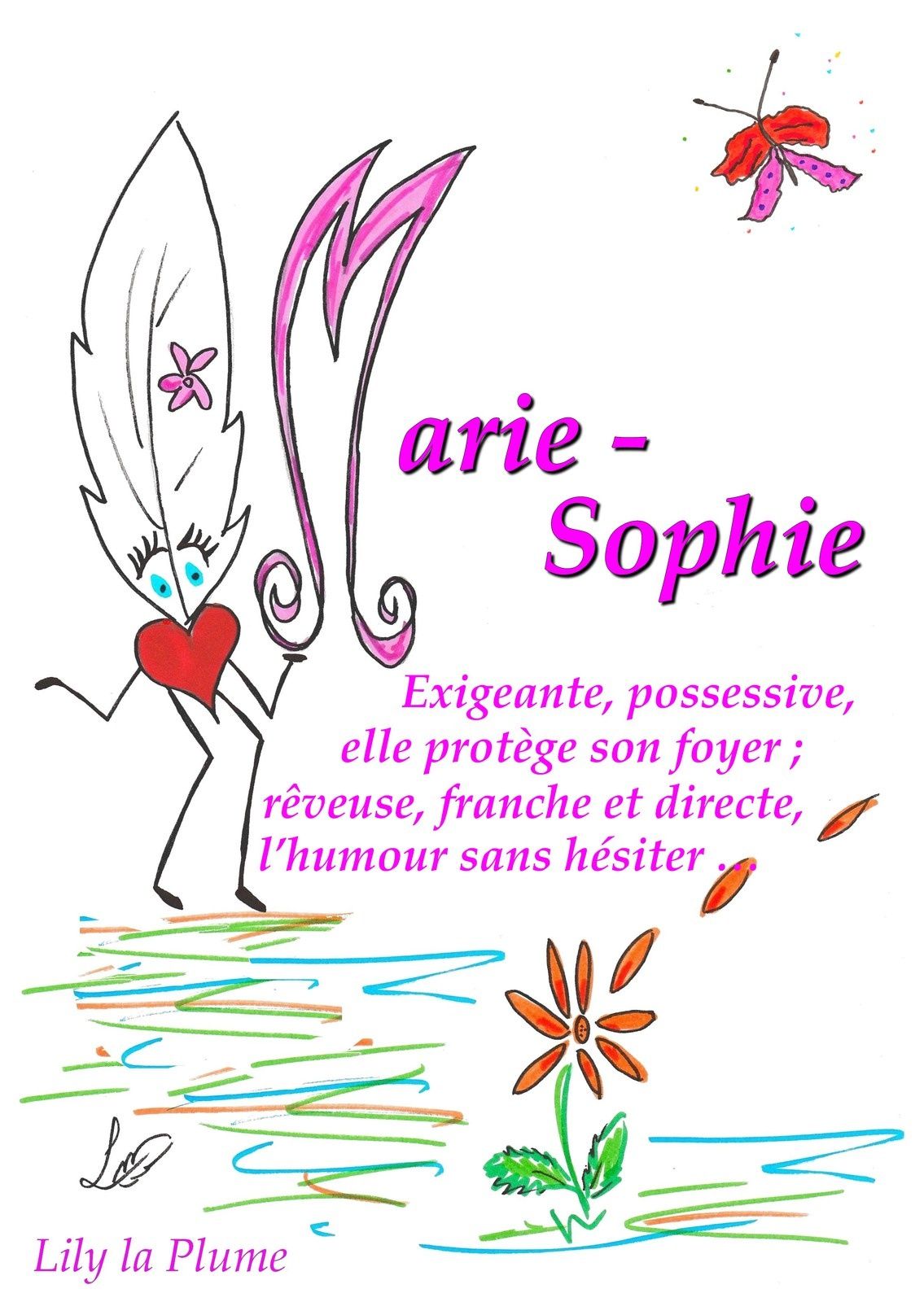 Carte prénom Lily la Plume. Découvrez sur mon blog les 800 prénoms déjà existants ou demandez moi, je me ferais un plaisir de créer celui qui n'y...
